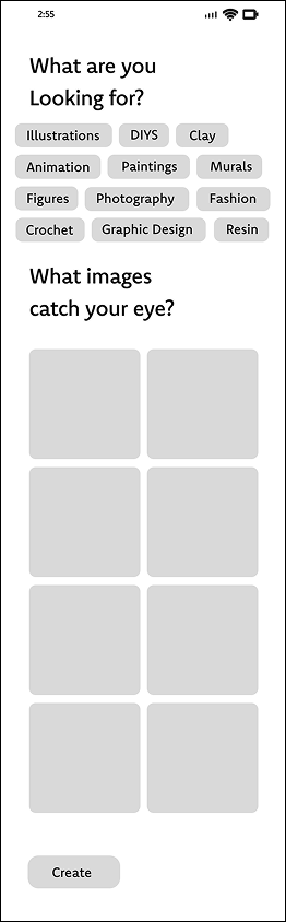 We did an exercise in class where we created the screens on paper and made a cut-out of a phone to layer on top so we could pretend to scroll.