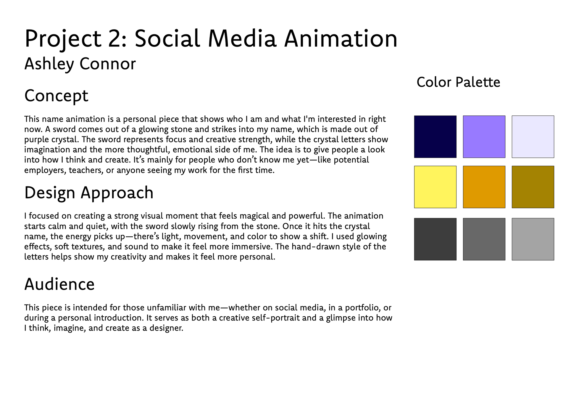 Create a short animation that visually represents your name, using motion, typography, and design elements to express your personal style and identity.
